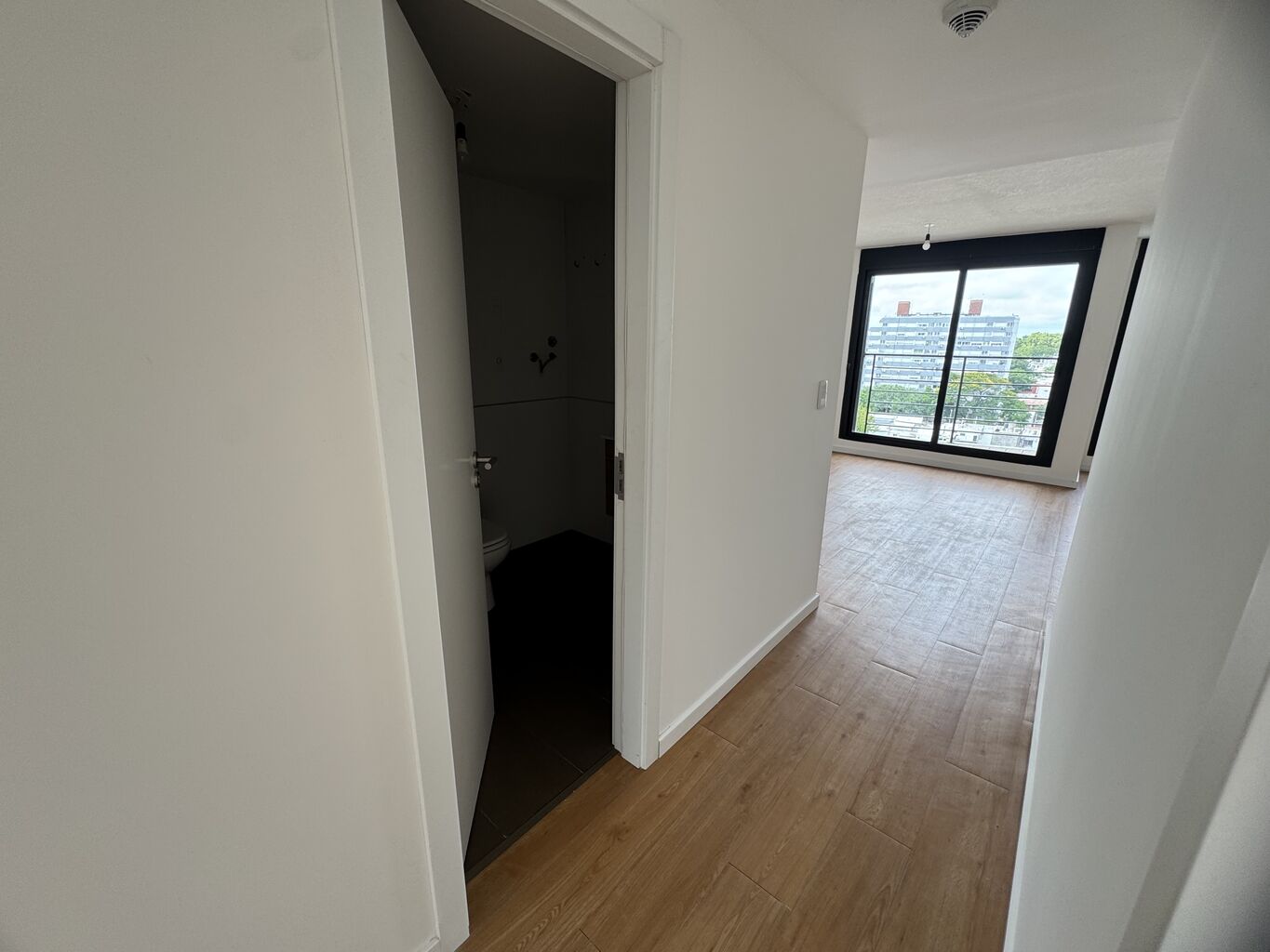 el apto viene con calefón y cortinas de PVC eléctricas de color negro en todas ventanas, dispone de un lindo balcón.